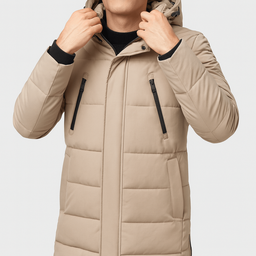 Soviska | Długa kurtka puchowa z regulowanym kapturem